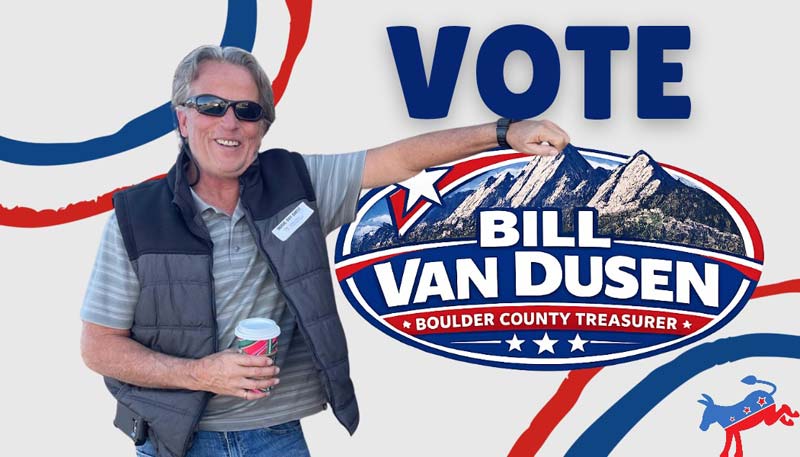 Van Dusen has been involved in both the private and public sectors throughout his career and currently sits on the boards of El Comite de Longmont and the Gateway Montessori School. “I very much enjoy working in the public sector and look forward to bringing my knowledge of fiscal management, including tax processes and procedures to bear in my position as Boulder County Treasurer”, Van Dusen said.