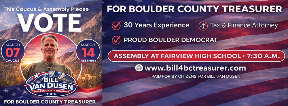 Van Dusen has been involved in both the private and public sectors throughout his career and currently sits on the boards of El Comite de Longmont and the Gateway Montessori School. “I very much enjoy working in the public sector and look forward to bringing my knowledge of fiscal management, including tax processes and procedures to bear in my position as Boulder County Treasurer”, Van Dusen said.