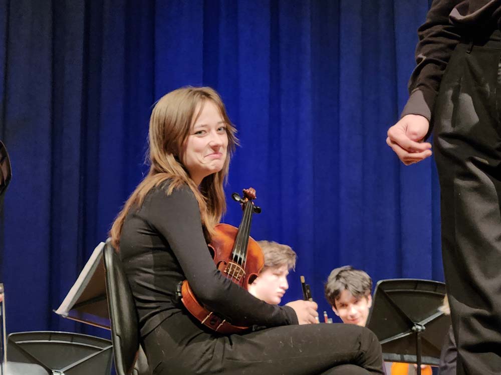 Anais seated first violin at a Longmont High School concert