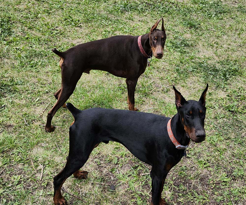 Gustav (the Red Doberman) and Hans/Johannes (the Black Doberman)